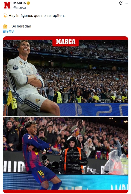 马卡晒亚马尔与C罗相似庆祝:有些画面独一无二,但会传承👑